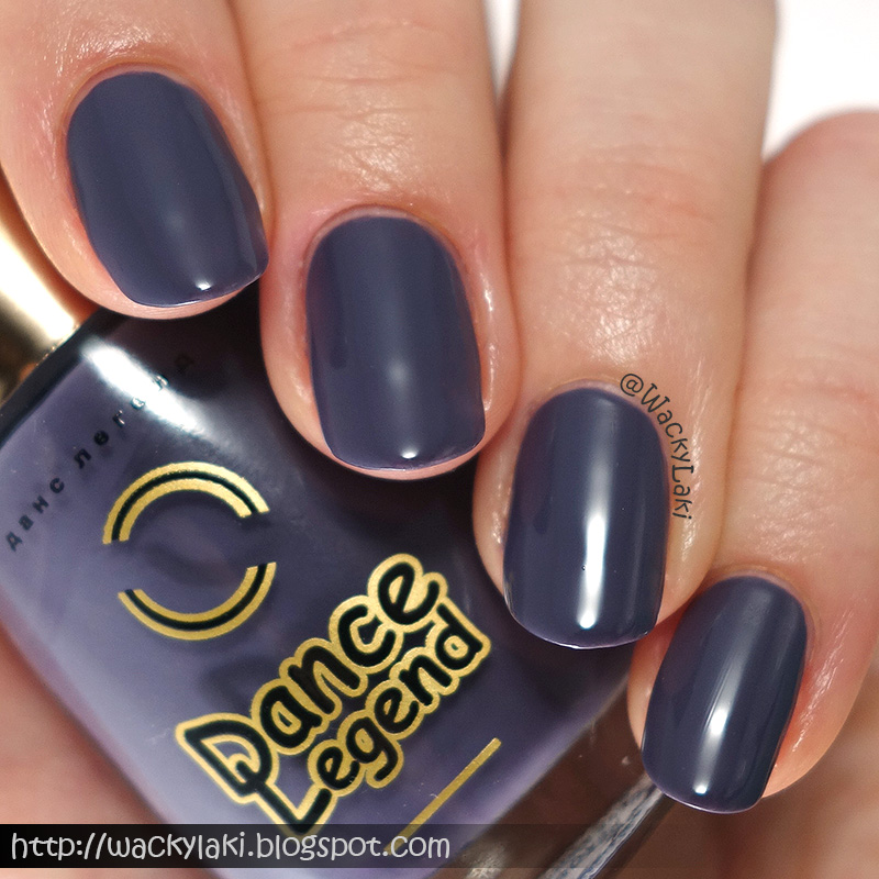 A purple-gray cream. This also has a great formula which is very smooth and easy to apply. Two coats provides full coverage. No top coat in these swatches...