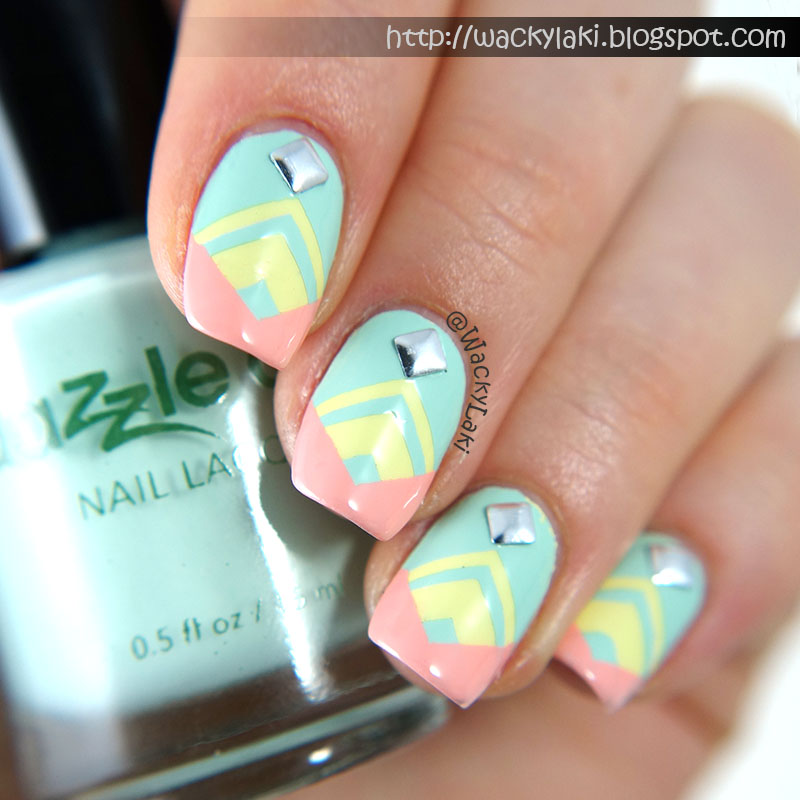 I am slowly continuing to make my way through folders of unposted nail art. It is kind of fun to go back and remember those manicures. It has also been inspiring me to keep playing around and making more nail art. I debated splitting this post into a few different ones, but eventually decided it would be better as one. All three of the manicures that I will show today use nail vinyls from Whats Up Nails and the pastel shades from Dazzle Dry Sweethearts collection whose swatches I posted a couple of days ago.